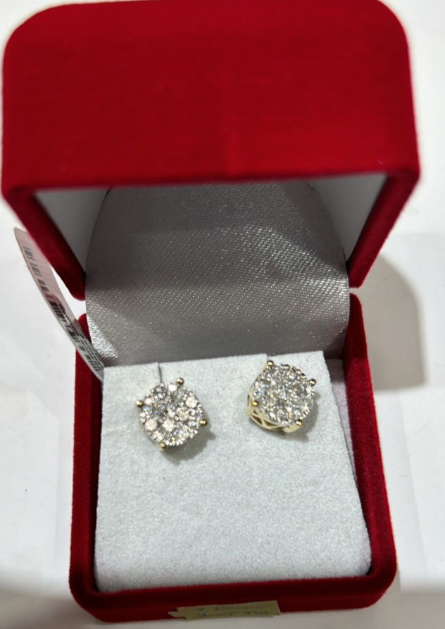 10K Yellow Gold Diamond Cluster Stud Earrings 0.75CTW - Round Brilliant Cut, Gift Boxed $2,200.00