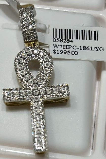 10K Yellow Gold Diamond Ankh Cross Pendant