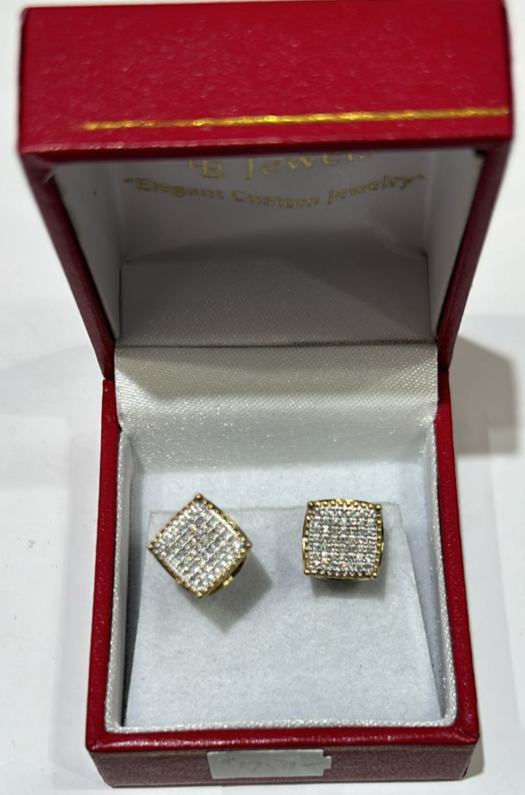 1 review for 10K Yellow Gold Diamond Square Cluster Stud Earrings 0.60CTW in Red Velvet Gift Box – Elegant Jewelry for Men