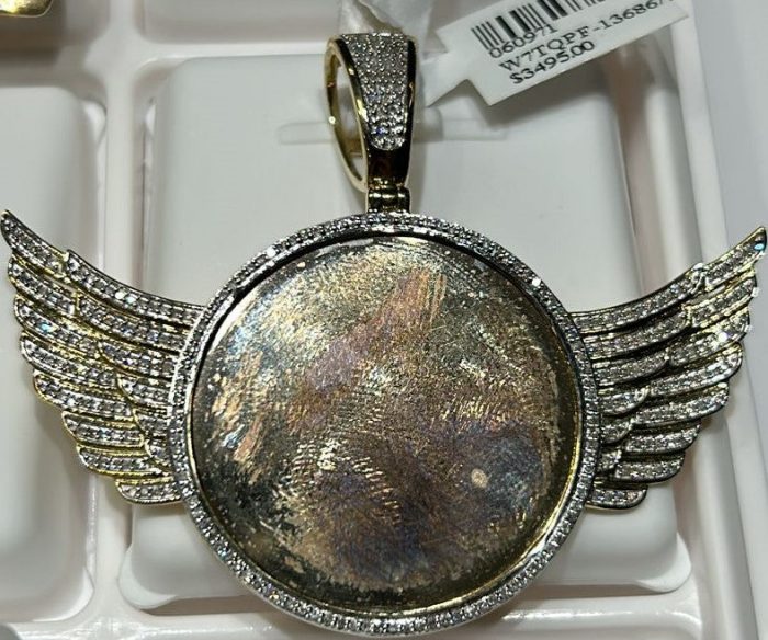 10K Yellow Gold Winged Round Coin Diamond Pendant $1,800.00