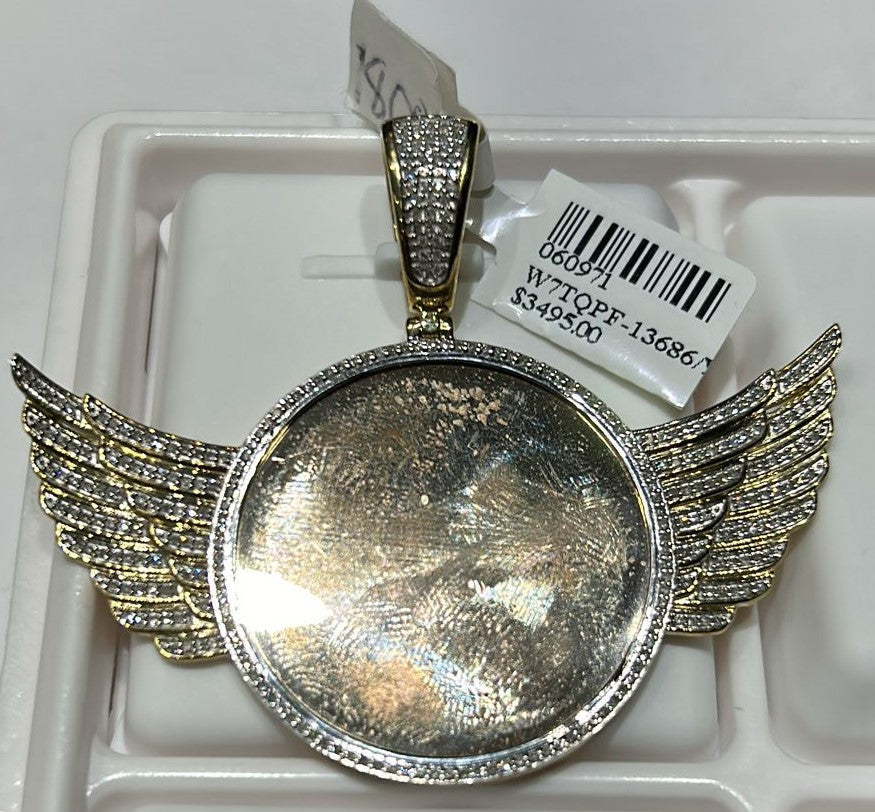 10K Yellow Gold Winged Round Coin Diamond Pendant $1,750.00