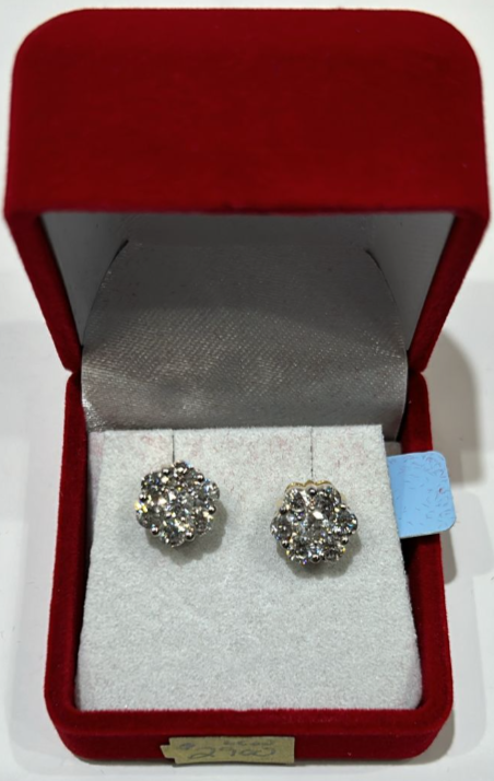 Luxury 18k White Gold Diamond Cluster Stud Earrings – Perfect Gift $400.00