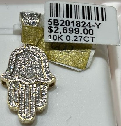 10K Yellow Gold Diamond Hamsa Hand Pendant