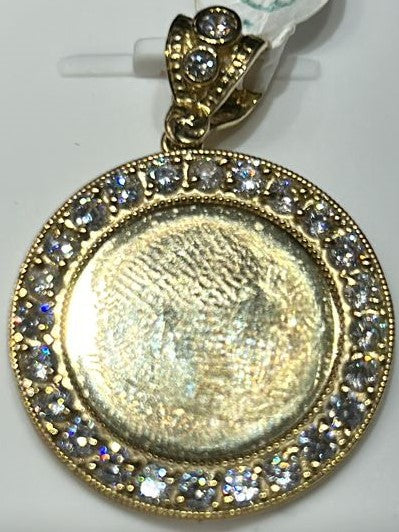 10K Yellow Gold Greek Key Round Coin Diamond Pendant